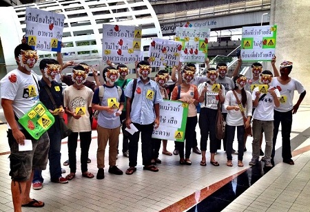 เมื่อวันที่ 5 มิ.ย. เครือข่ายนักศึกษาจากมหาวิทยาลัยบูรพา มหาวิทยาลัยธรรมศาสตร์ มหาวิทยาลัยรามคำแหง มหาวิทยาลัยเกษตรศาสตร์ มหาวิทยาลัยรังสิต และจุฬาลงกรณ์มหาวิทยาลัย ประมาณ 30 คน สวมหน้ากากรูปเสือ รวมตัวกันที่หน้าหอศิลปวัฒนธรรมกรุงเทพฯ เพื่อเตรียมทำกิจกรรมคัดค้านการก่อสร้างเขื่อนแม่วงก์ ในอุทยานแห่งชาติแม่วงก์ จ.นครสวรรค์ โดยก่อนจะเดินไปยังสยามสแควร์ เครือข่ายนักศึกษาได้อ่านแถลงการณ์คัดค้านเขื่อนแม่วงก์ที่หน้าหอศิลป์ฯ ระบุว่า เราขอพูดในนามของเสือโคร่งและสัตว์ป่า พี่น้องสัตว์ป่าและสัตว์เมืองที่รัก การที่ชาวเสือโคร่งได้รับมติจากสภาสัตว์ป่าแม่วงก์ ให้เข้ามาทำการเคลื่อนไหวในเมืองหลวงของสัตว์เมืองในครั้งนี้ ที่เราหนีออกจากป่าเข้าเมืองมาในวันนี้ เราได้ร่วมประชุมกับกับผู้แทนสัตว์ป่า อันประกอบด้วยสัตว์น้ำ สัตว์บก และสัตว์อากาศ (สัตว์ที่บินได้) โดยขอยืนยันว่า ไม่ได้รับการแทรกแซงจากสัตว์เมืองแต่อย่างใด จนได้มติและข้อเสนอดังนี้