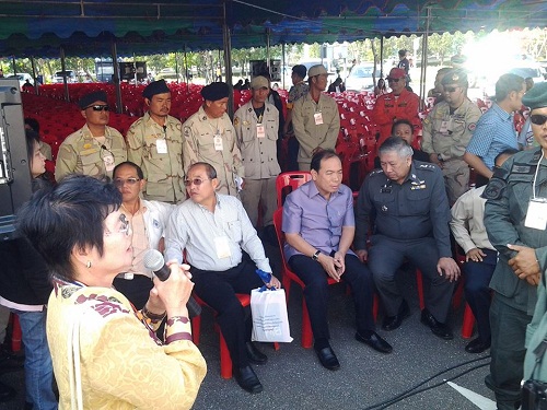 แกนนำกลุ่มอนุรักษ์กาญจน์กล่าวถึงการจัดเวทีที่ไม่เป็นธรรมต่อชาวบ้านต่อหน้าผู้ว่าราชการจังหวัด