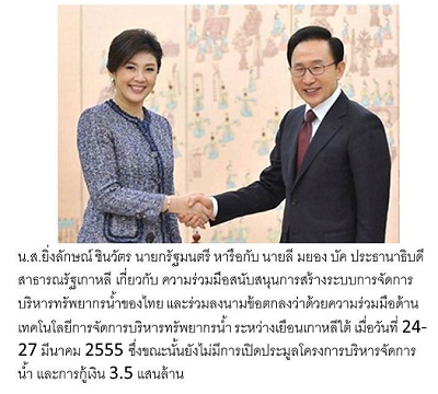 นอกจากนี้จากการมีการตั้งข้อสังเกตว่า การเดินทางไปยังประเทศเกาหลีใต้ของ น.ส.ยิ่งลักษณ์ ชินวัตร ในระยะหลัง จะมีผลเกี่ยวข้องกับการเจรจาเรื่องนี้หรือไม่นั้น นายยัม แสดงความคิดเห็นว่า ก็เป็นเรื่องที่น่าคิด แต่สำหรับข่าวสารในเกาหลีใต้ ไม่มีการพูดถึงเรื่องการลงทุนของบริษัทเกาหลีใต้ในประเทศไทยเลย ซึ่งตามปกติแล้วหากบริษัทเกาหลีใต้จะไปลงทุนสูง ๆ ในต่างประเทศ ก็จะมีการนำเสนอข่าวอย่างกว้างขวาง แต่ก็ไม่แน่ใจว่า จะมีการเจรจาระหว่างรัฐบาลต่อรัฐบาล ต่อกรณีนี้หรือไม่ ซึ่งเป็นเรื่องที่จะต้องติดตามกันต่อไป