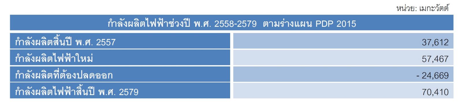 ปลายเดือนเมษายน 2558 ที่ผ่านมา กระทรวงพลังงานได้จัดเวทีรับฟังความเห็นร่างแผนพัฒนากำลังผลิตไฟฟ้าของประเทศปี พ.ศ. 2558 - 2579 (Power Development Plan หรือ PDP 2015) ขึ้น โดยเป็นการจัดสัมมนารับฟังความคิดเห็นครั้งสุดท้ายประกอบการพิจารณาจัดทำร่างแผน PDP 2015 เพื่อนำเสนอต่อคณะกรรมการนโยบายพลังงานแห่งชาติ (กพช.) และคณะรัฐมนตรีต่อไป ซึ่งคาดว่าแผน PDP 2015 จะประกาศใช้ได้ในเดือนพฤษภาคม 2558 นี้