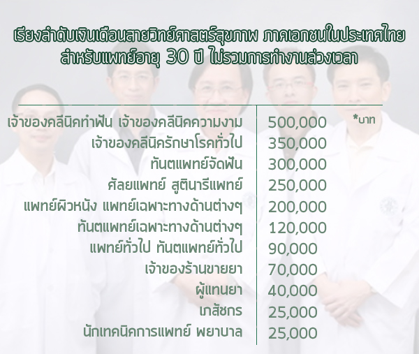 อันดับเงินเดือนแพทย์สาขาต่างๆ