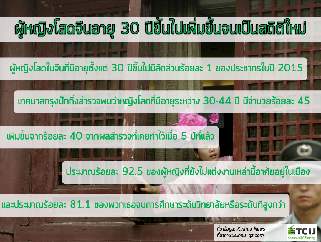 คนไทยรู้ยัง : ผู้หญิงโสดจีนอายุ 30 ปีขึ้นไปเพิ่มขึ้นจนเป็นสถิติ