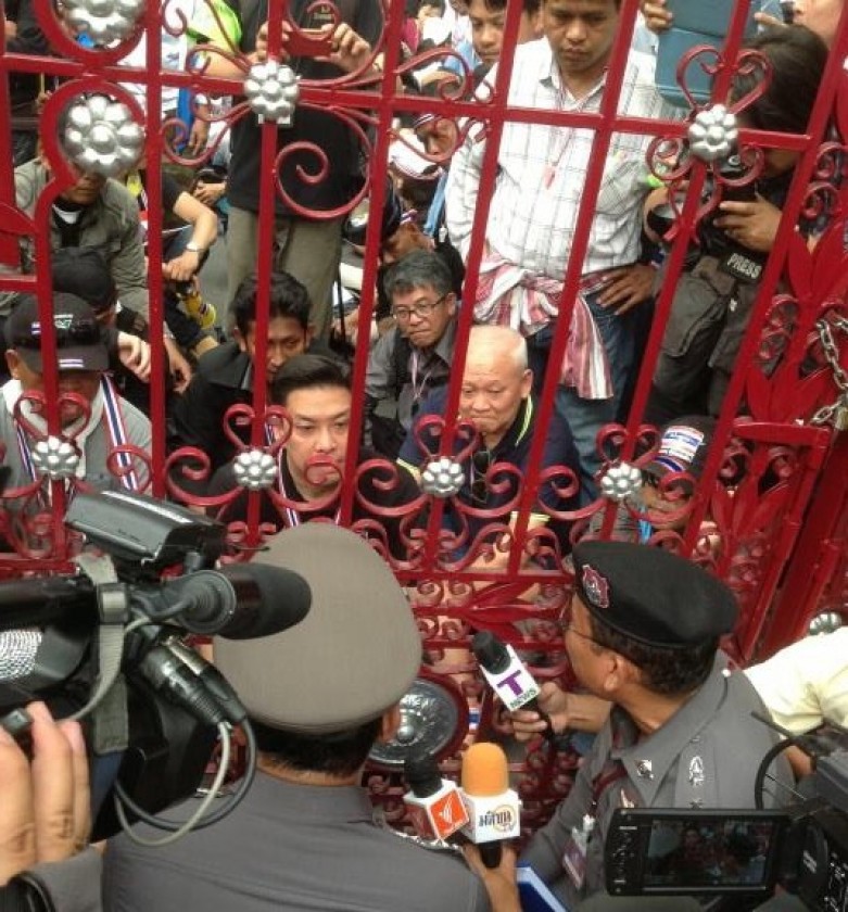 ในขณะที่กลุ่มเสื้อแดงมีภาพ ‘ทหาร’ เป็นปีศาจร้ายคู่ตรงข้าม กลุ่มอนุรักษ์นิยมฝ่ายตรงข้ามกลุ่มเสื้อแดงก็มี‘ตำรวจ’เป็นปีศาจร้ายด้วยเช่นกัน ภาพประกอบคือการเจรจาระหว่างเจ้าหน้าที่ตำรวจ กับผู้ชุมนุมกลุ่ม กปปส. บริเวณหน้าสำนักงานตำรวจแห่งชาติ เมื่อวันที่ 25 พ.ย. 2556 ที่มาภาพประกอบ: งานวิจัยเรื่อง 'ตำรวจกับการเปลี่ยนผ่านสู่ประชาธิปไตยของไทย'