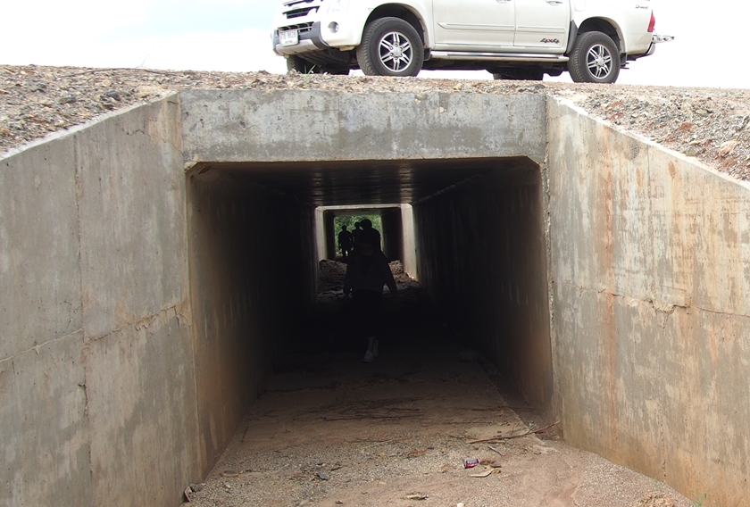 อุโมงค์ กว้าง 2.4 เมตร สูง 2.1 เมตร ความยาว 55 เมตรที่ชาวบ้านใช้สัญจรไปมาระหว่างสองฝั่งของโครงการ ซึ่งขนาดของอุโมงค์หรือทางลอดเล็กเกินกว่ารถยนต์จะผ่านได้ คล้ายกับการระบายน้ำมากกว่าใช้เดินทาง