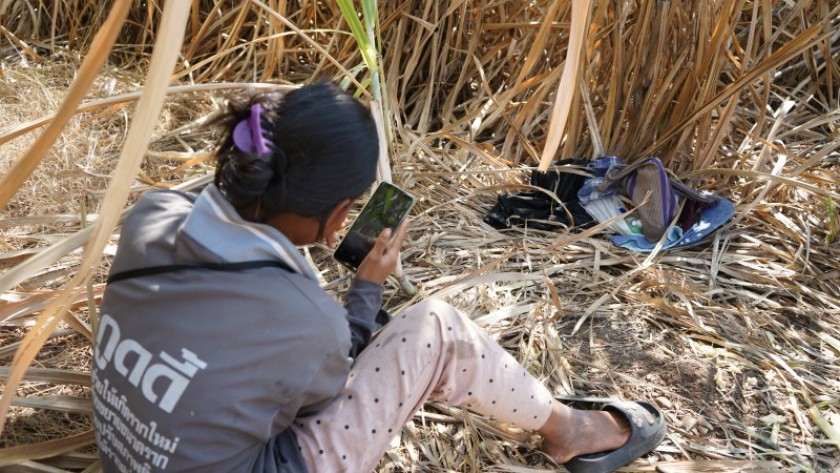 เอลเล่าว่าเธอตามพ่อแม่เข้ามาอยู่ในไทยเกือบ 20 ปีแล้ว เป็นคนงานที่อยู่ในไทยตลอดทั้งปี หลังหมดฤดูอ้อยเธอก็จะทำงานอย่างอื่น ทั้งปลูกสับปะรด เก็บปาล์มน้ำมัน