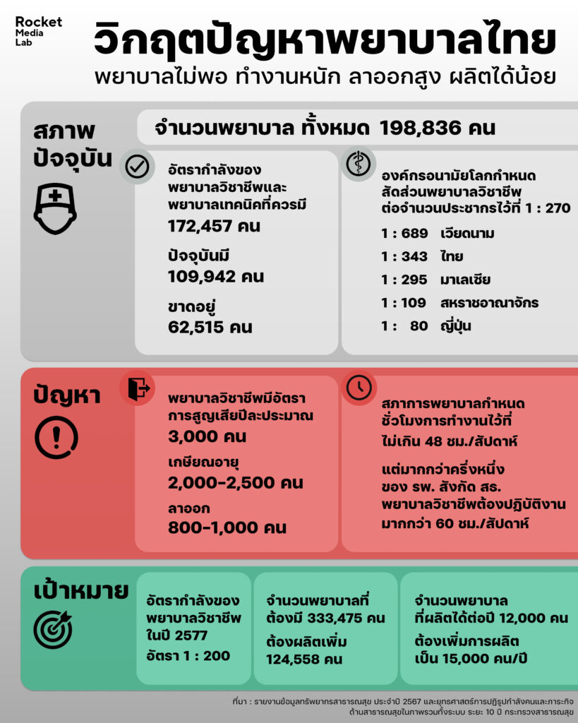Rocket Media Lab ชวนสำรวจทรัพยากรพยาบาลวิชาชีพในระบบสาธารณสุขของไทย ว่ามีปัญหา มีเป้าหมายและแนวทางการแก้ปัญหาอย่างไรบ้างในอนาคต
